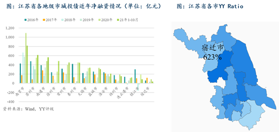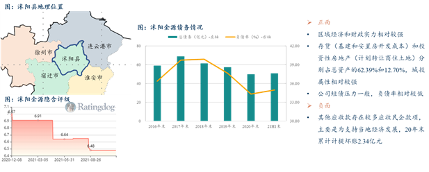 從經(jīng)濟和財政實力來看,宿遷市目前在省內(nèi)墊底沒有爭議(跟連云港比較接近),對城投平臺的托底能力不強,從區(qū)位條件來看,離經(jīng)濟發(fā)達的蘇南地區(qū)有一段距離,受到的產(chǎn)業(yè)輻射較弱,因此投資者對宿遷整體的固有印象是偏弱的。