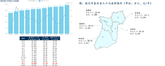 但換個角度來看,宿遷目前債務(wù)負(fù)擔(dān)在省內(nèi)處在一個相對較低的水平,存在一定的舉債空間,另外依托洋河和京東的布局,以及宿遷經(jīng)開區(qū)的產(chǎn)業(yè)生態(tài),地方經(jīng)濟有一定基本盤支撐,再加上承接蘇州產(chǎn)業(yè)轉(zhuǎn)移,整體產(chǎn)業(yè)的發(fā)展有一定推動力,在淮海經(jīng)濟圈仍有不錯的競爭力,近10年人口尚可保持緩慢的凈流入。