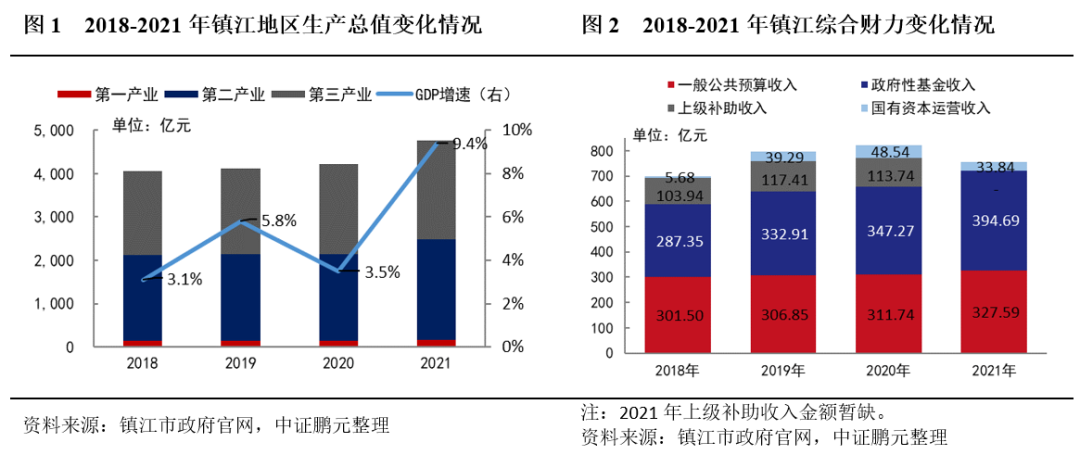 鎮(zhèn)江市經(jīng)濟和綜合財力增速明顯加快。鎮(zhèn)江市2021年GDP增速明顯高于全省均值及大部分江蘇省地級市,土地財政發(fā)力及稅收增長帶動下,綜合財力亦保持快速增長,但整體仍屬于偏弱水平,GDP和綜合財力省內(nèi)僅優(yōu)于宿遷、連云港和淮安。