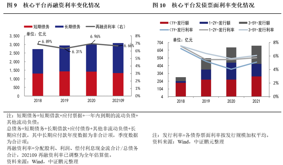 五大核心平臺整體再融資利率變化不大,債券發(fā)行利率走勢分化,市場依然偏謹慎。2019年,由于鎮(zhèn)江隱性債務置換的傳言發(fā)酵,鎮(zhèn)江城投平臺公開市場的債券發(fā)行規(guī)模大幅提升,且利率明顯下降;但2020年,受永煤債違約事件影響,不同期限債券發(fā)行利率走勢出現(xiàn)結(jié)構(gòu)性分化,鎮(zhèn)江城投平臺短期債券的認可度明顯提升;而2021年以來城投整體融資政策邊際收緊,推高了城投債各期限的發(fā)行利率。總體來看,五大核心平臺整體再融資利率變化不大,債券發(fā)行利率中長期未有顯著下降,市場依然偏謹慎。