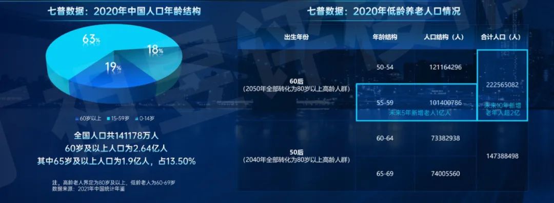 但養老產業也迎來最大的亮點之一,隨著60后人群開始進入退休,養老消費將迎來變革。2022年,將正式迎來60后人群的退休高峰,低齡老人年均新增2360萬人,五年累計增加1.18億人,未來低齡康養消費市場將被激活。