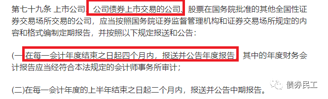 根據(jù)新《證券法》第七十九的明確要求,債券發(fā)行人需要在4月30日之前披露年報(bào)報(bào)。