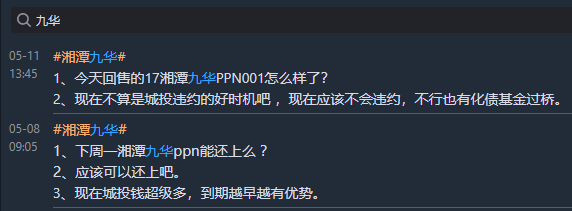 前兩天有老鐵在債券群里問17湘潭九華PPN001的近況,5月10號為該只債的付息日,5月11號這只債面臨回售是否行權(quán),目前公開信息暫未出現(xiàn)該只債的付息、回售出現(xiàn)狀況的報道。