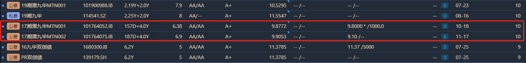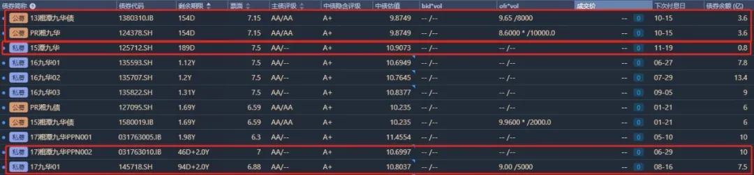 目前九華流通中債券如下,對九華有興趣的老鐵們今年可以重點關(guān)注圖中劃紅框的個券。