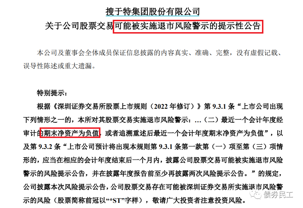 廣州高新投持有搜于特8.06%股份,為搜于特第二大股東。根據(jù)搜于特2022年3月12日披露的公告,由于預(yù)計(jì)公司2021 年末凈資產(chǎn)為負(fù)值,公司存在可能被實(shí)施退市風(fēng)險警示的風(fēng)險。