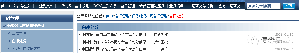 2021年4月30日,因資產無償劃轉事宜披露不及時,銀行間市場交易商協會對嘉興灣北城市發展集團有限公司、瀘州市工業投資集團有限公司和赤峰國有資本運營(集團)有限公司進行自律處分。