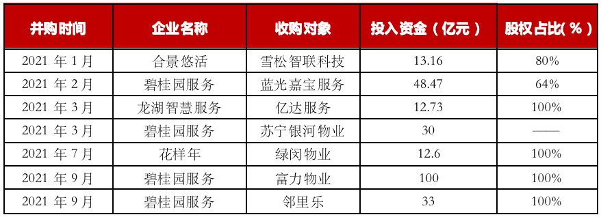 表:2021年部分物業(yè)服務(wù)企業(yè)超10億的收購(gòu)事件