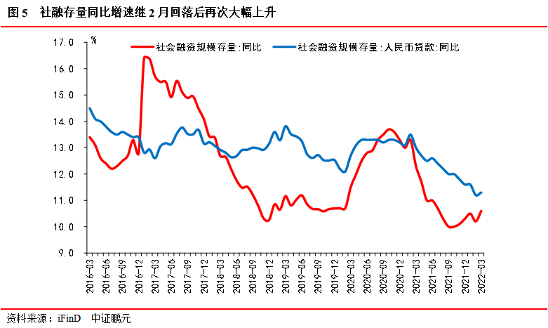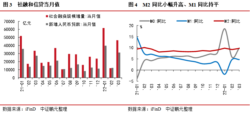 3月社融信貸總量超預期,信貸結構仍一般,短貸票據(jù)依舊貢獻主要增量、企業(yè)中長期貸款邊際好轉、居民中長期貸款依舊低迷,地產(chǎn)銷售仍不佳。近期國內疫情形勢嚴峻、經(jīng)濟形勢出現(xiàn)超預期變化,經(jīng)濟下行壓力加大,寬信用在慢推進,穩(wěn)增長政策繼續(xù)加碼。