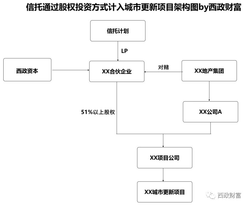 在項(xiàng)目土地款支付完畢的情況下,對于滿足投資條件的項(xiàng)目和主體(白名單制),一些信托機(jī)構(gòu)仍舊可以通過股權(quán)投資方式(優(yōu)先股)進(jìn)行合作。以股權(quán)投資方式合作,在投后管理、風(fēng)控以及對項(xiàng)目的把控方面則比以往更為嚴(yán)格。以下以我們財(cái)富中心操作的股權(quán)投資類項(xiàng)目為例予以說明: