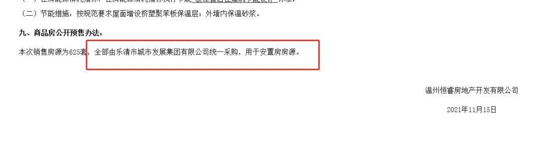 11月18日,樂清都匯華庭三期開盤,三期625套可售房源全部由樂清城發統一采購,同樣是用做安置房房源。