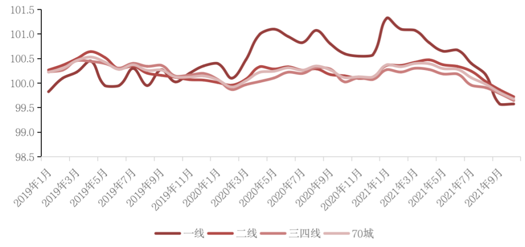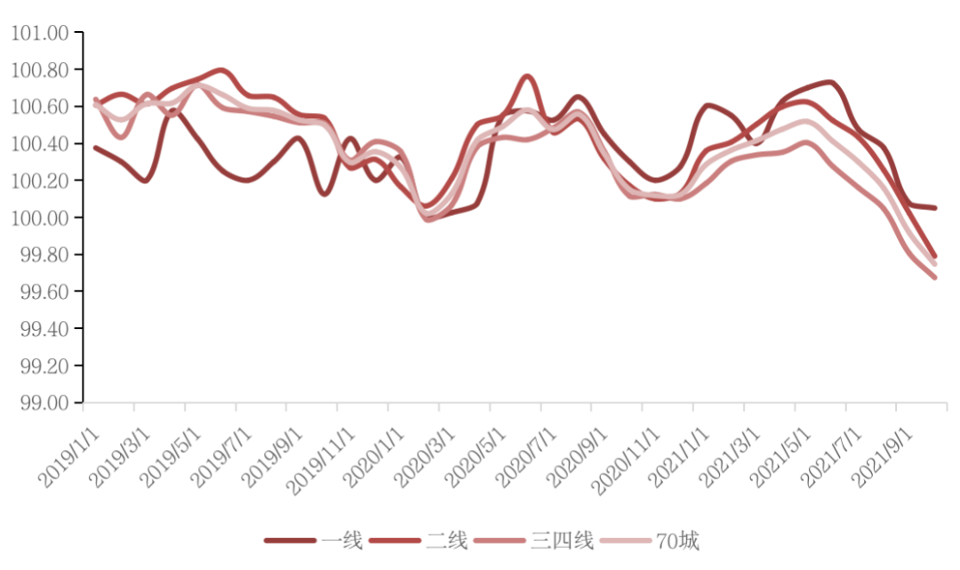 國家統(tǒng)計局?jǐn)?shù)據(jù)顯示,2021年10月,70個大中城市商品住宅銷售價格環(huán)比總體延續(xù)略降態(tài)勢,同比漲幅繼續(xù)回落。