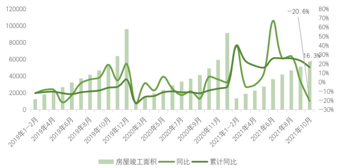 與此同時,從9月的數(shù)據(jù)來看,2021年9月全國商品房銷售面積16129萬平方米同比降幅較8月擴大2.3pct。由此可見,2021年10月全國商品房銷售表現(xiàn)非但未能止跌,反而加速下滑。