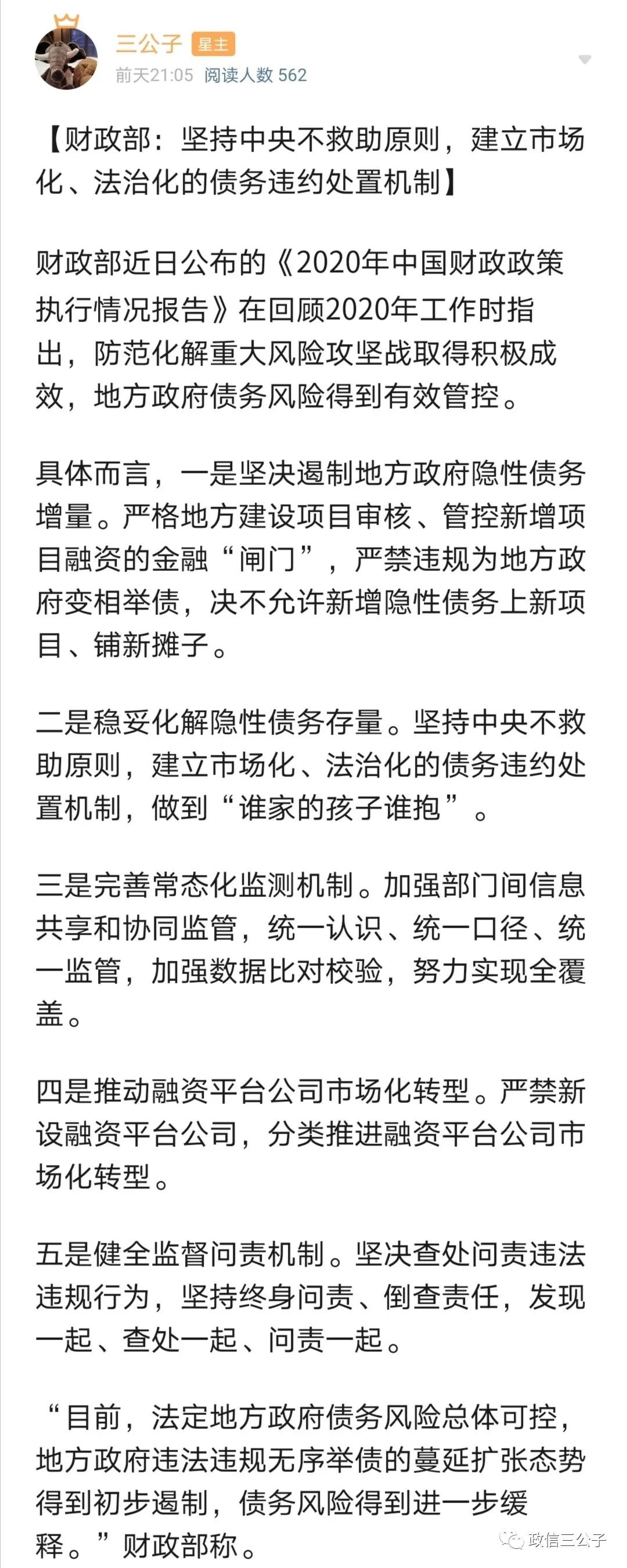 其實(shí)只是老生常談,沒有新”內(nèi)容。財(cái)政部一直以來的口徑,就是“中央不兜底”。