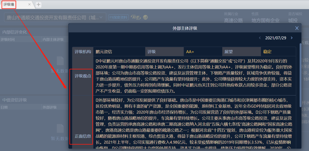 在如此艱難的情況下,唐山通順交通投資開發有限責任公司(以下簡稱“通順交投”)為眾多城投公司中的佼佼者,2021年7月30日公開披露,公司的主體信用級別由AA上調至AA+,成為2021為數不多評級上調的城投公司之一。