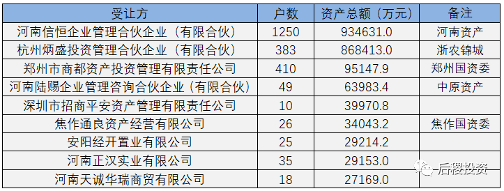 從上圖看,長城資產(chǎn)、東方資產(chǎn)和河南資產(chǎn)出包量位列前三,但總成交金額差別不大。