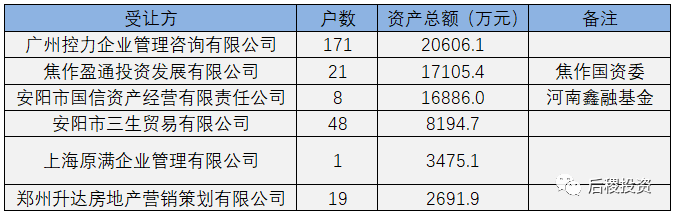 公司主要從事不良資產(chǎn)投資等特殊機會投資領(lǐng)域內(nèi)的投資管理服務(wù)。公司依靠專業(yè)的服務(wù)團隊,與銀行、信托、券商、AMC等金融機構(gòu)建立了良好的合作關(guān)系,將長期深耕特殊機會資產(chǎn)管理領(lǐng)域,致力于發(fā)現(xiàn)低估值,創(chuàng)造高價值,成為國內(nèi)領(lǐng)先的特殊機會資產(chǎn)管理服務(wù)商。聯(lián)系人:18072731849(王女士)微信公眾號:后稷投資(ID:houjiamc)