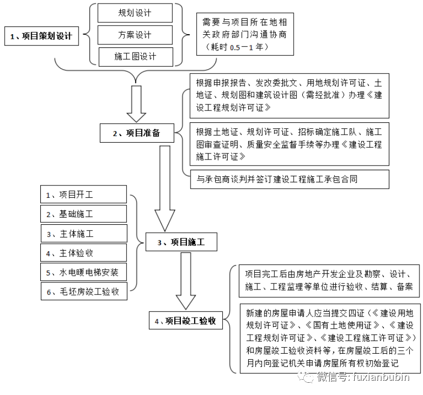 房地產(chǎn)開(kāi)發(fā)建設(shè)過(guò)程可以細(xì)分為四個(gè)階段:分別為項(xiàng)目策劃設(shè)計(jì)階段、項(xiàng)目準(zhǔn)備階段、項(xiàng)目施工階段和項(xiàng)目竣工驗(yàn)收階段。