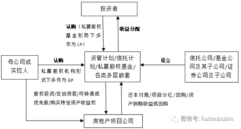三是私募股權(quán)基金投資模式。私募股權(quán)基金投資模式下,一般由項(xiàng)目公司母公司或?qū)嶋H控制人作為GP,享受基金劣后收益,投資方作為L(zhǎng)P,享受基金優(yōu)先級(jí)收益,私募股權(quán)投資基金以權(quán)益投資方式投資房地產(chǎn)項(xiàng)目公司,仍以特殊分紅條款或回購(gòu)等方式來(lái)進(jìn)行退出。