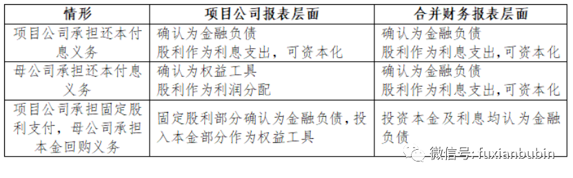 在實(shí)際業(yè)務(wù)中明股實(shí)債獲得的資金記入所有者權(quán)益,但其真實(shí)列報(bào)屬性根據(jù)還本付息義務(wù)的主體不同有所不同。根據(jù)現(xiàn)行會(huì)計(jì)準(zhǔn)則,投資在不同的會(huì)計(jì)主體層面列報(bào)屬性可能有所不同(如下表所示)