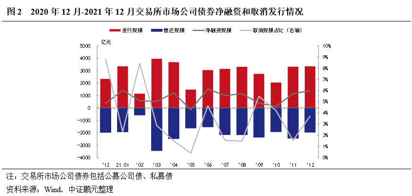 2. 12月份交易所公司債券凈融資1,393.12億元,共取消發(fā)行債券20只