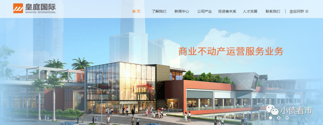 據官網介紹,皇庭國際是一家以不動產運營管理為主要業務的集團化上市公司,創建于1983年,由經營零售商業起步。