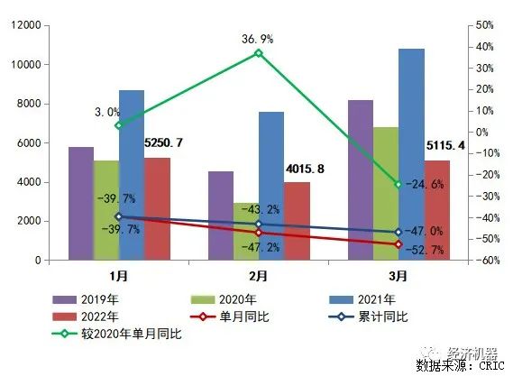這與最新的房地產(chǎn)銷(xiāo)售數(shù)據(jù)是一致的。據(jù)克爾瑞研究顯示,今年3月TOP100房企銷(xiāo)售金額同比降低52.7%,較2月擴(kuò)大5.5個(gè)百分點(diǎn)。1-3月百?gòu)?qiáng)房企的銷(xiāo)售規(guī)模同比降低47%,也低于2020年的同期水平。房地產(chǎn)市場(chǎng)的惡化仍在繼續(xù),趨勢(shì)并沒(méi)有的到根本性的扭轉(zhuǎn),塌方風(fēng)險(xiǎn)已然存在。