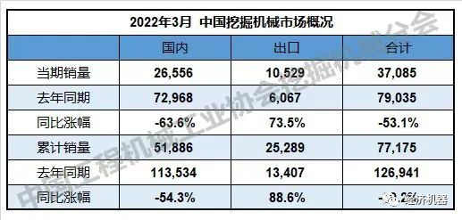 雖然地方債發(fā)行前置明顯,進(jìn)度顯著提升,但其使用效率似乎并不高。由最新的挖掘機(jī)數(shù)據(jù)可以窺見(jiàn)一二。2022年3月,共計(jì)銷(xiāo)售各類(lèi)挖掘機(jī)械產(chǎn)品37,085臺(tái),同比下降53.1%。其中,國(guó)內(nèi)市場(chǎng)銷(xiāo)量26,556臺(tái),同比下降63.6%;出口銷(xiāo)量10,529臺(tái),同比增長(zhǎng)73.5%(圖6)。這表明,基建建設(shè)可能并沒(méi)有想象中那么火爆。
