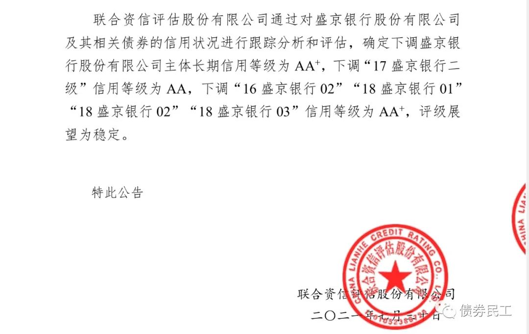 根據(jù)聯(lián)合資信2021年7月30日出具的跟蹤評級報告,盛京銀行股份有限公司(以下簡稱“盛京銀行”)的主體長期信用等級由AAA下調(diào)至AA+。根據(jù)公開披露的盛京銀行財務數(shù)據(jù),截至2020年末,盛京銀行的資產(chǎn)總額為10379.58億元,是國內(nèi)為數(shù)不多的資產(chǎn)破萬億的城商行。目前國內(nèi)資產(chǎn)破萬億的城商行包括北京銀行、上海銀行、江蘇銀行、南京銀行、寧波銀行、徽商銀行、杭州銀行和盛京銀行。