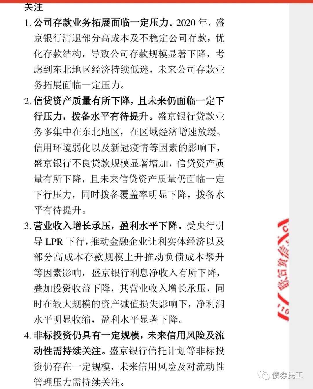 根據(jù)評級報告的信息,盛京銀行此次主體信用評級下調(diào)的主要原因可能包括:存款業(yè)務拓展面臨一定壓力、信貸資產(chǎn)質(zhì)量有所下降、營業(yè)收入增長承壓、盈利水平下降以及非標投資仍具有一定規(guī)模等。