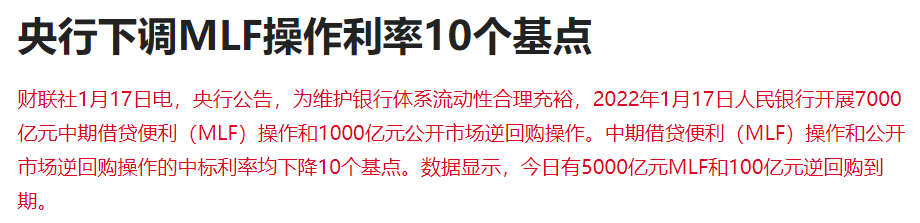 央行宣布同時降低MLF與逆回購利率,降低幅度為10個基點。