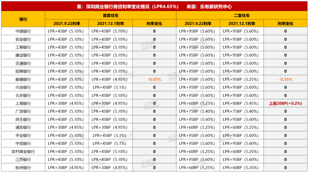 深圳房貸利率確實在回調,據樂有家12月1日的統計數據顯示,深圳郵政銀行下調一二手房利率。首套利率4.95%,二套利率5.25%。
