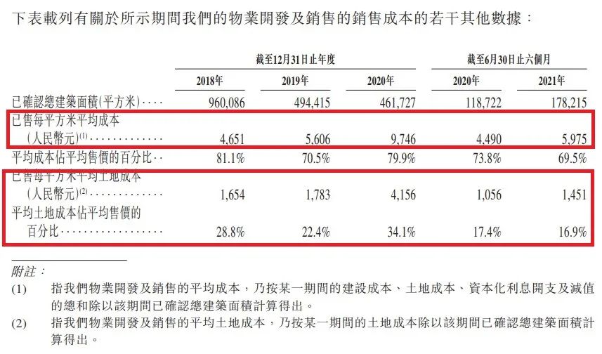 2020上半年為1056元/平米,2021年同期為1451元/平米。土地成本占平均售價之比,2018年為28.8%、2019年為22.4%、2020年為34.1%。
