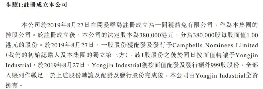 2019年8月27日,侯氏家族在開曼群島注冊成立一間獲豁免有限公司,作為合能控股的控股公司。