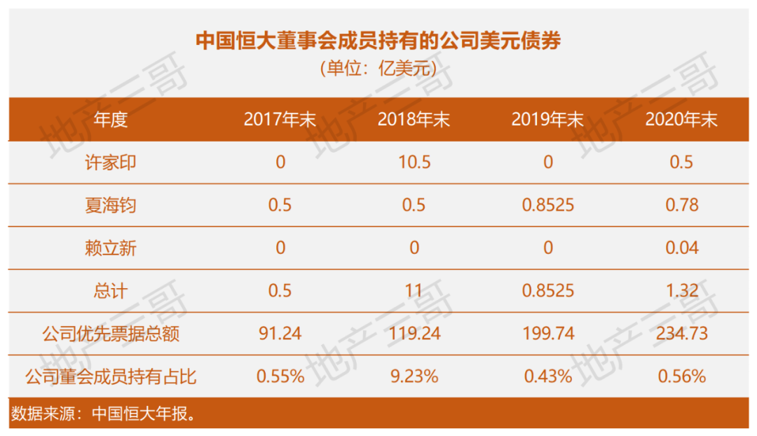 此外,如果說2019年期間,許家印已經料到恒大今日之困局而提前出售自己持有的公司美元債券,也不合情理。