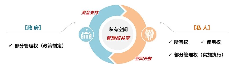 當(dāng)然,權(quán)益剝離千頭萬緒,會牽扯著多方利益,實(shí)施起來絕非易事。目前看,有效的剝離主要聚焦「所有權(quán)」「管理權(quán)」,通過「公屬空間,專業(yè)管理」「私屬空間,協(xié)同管理」兩種方式實(shí)現(xiàn)權(quán)益剝離。