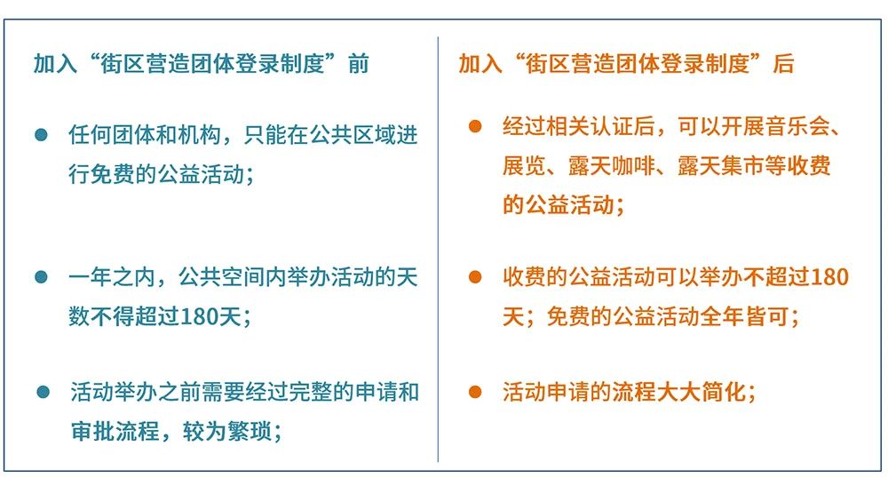 ▼ 加入街區(qū)營造團(tuán)體登錄制度的前后對比
