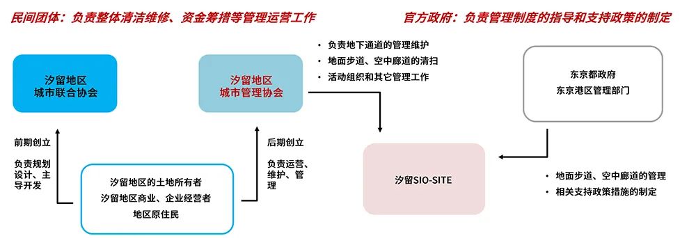 政企分工,管理細(xì)化:進(jìn)入運(yùn)營階段,汐留SIO-SITE成立了專門的「汐留城市管理協(xié)會」,其職能不同于地區(qū)負(fù)責(zé)規(guī)劃建設(shè)的城市聯(lián)合協(xié)會,管理協(xié)會主要以區(qū)域的管理維護(hù)工作為核心。
