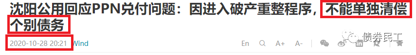 不過根據(jù)21世紀(jì)經(jīng)濟報道的10月28日晚間的報道,沈陽公用回應(yīng)“不能單獨清償個別債務(wù)”。