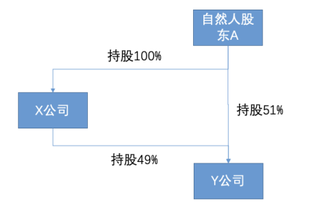 在該投資結(jié)構(gòu)中,雖然Y公司自身并非一人公司,但是自然人股東A仍然通過直接控制X公司,間接完成對Y公司的100%控股。表面上,Y公司的股權(quán)結(jié)構(gòu)并不符合“一人公司”的特點,但是實質(zhì)上與一人公司并無差別,同樣會造成股東利益高度集中、內(nèi)部制衡監(jiān)管機制缺位的問題。因此,對于該情況下將普通公司認定為“實質(zhì)上”的一人公司,符合《公司法》第六十三條的立法目的,也符合公平原則的要求。