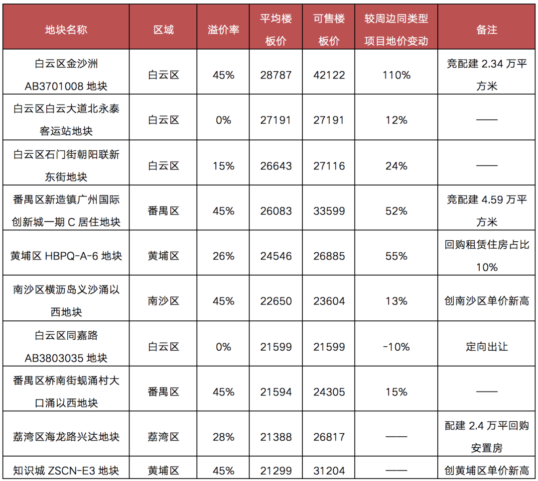 注:荔灣區興達地塊和黃埔區知識城E3地塊周邊近兩年內無同類型宅地成交。