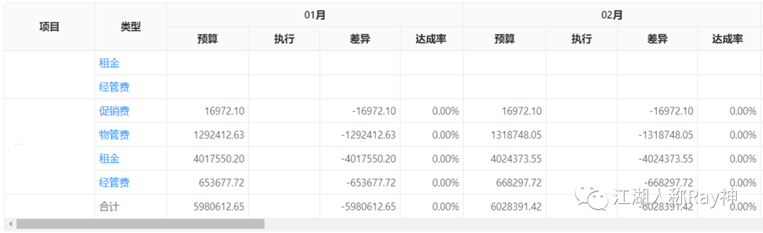 一定時期的某項指標(biāo)的實際完成額相比于預(yù)算目標(biāo)額的百分比,即:預(yù)算達成率=實際完成額 / 預(yù)算目標(biāo)額。由于預(yù)算一般按年進行考核,因此預(yù)算達成率有月度達成率和累計達成率的概念,累計預(yù)算達成率=年累計實際完成額 / 年度預(yù)算目標(biāo)額。此外,運營過程中,進行預(yù)算達成率評價的指標(biāo)一般包括各項收入和費用,如:租金預(yù)算達成率、費用預(yù)算使用率等,也有應(yīng)用于出租面積、商戶銷售額、客流等業(yè)務(wù)指標(biāo)上。