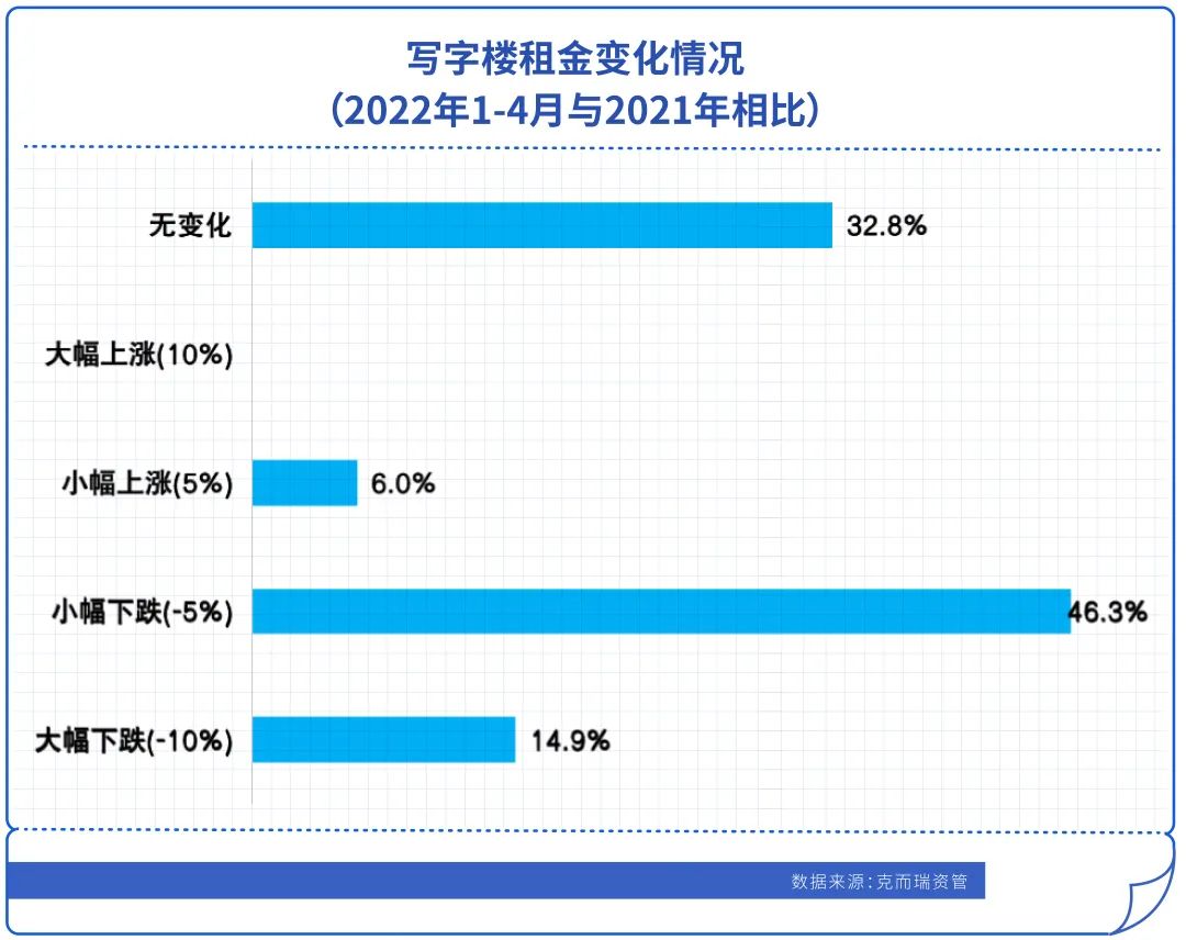 從出租率來看,與2021年同期相比,2022年1-4月期間44.8%出租率出現下降,其中16.4%大幅下跌,無變化占32.8%。