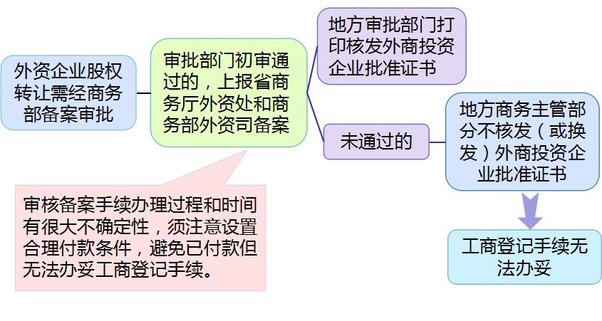 在收購外資企業、國有企業的股權時要特別關注股權轉讓手續的辦理程序,避免因辦理不了股權轉讓手續而導致收購方投入大量資金卻在法律上對目標公司沒有任何權利。
