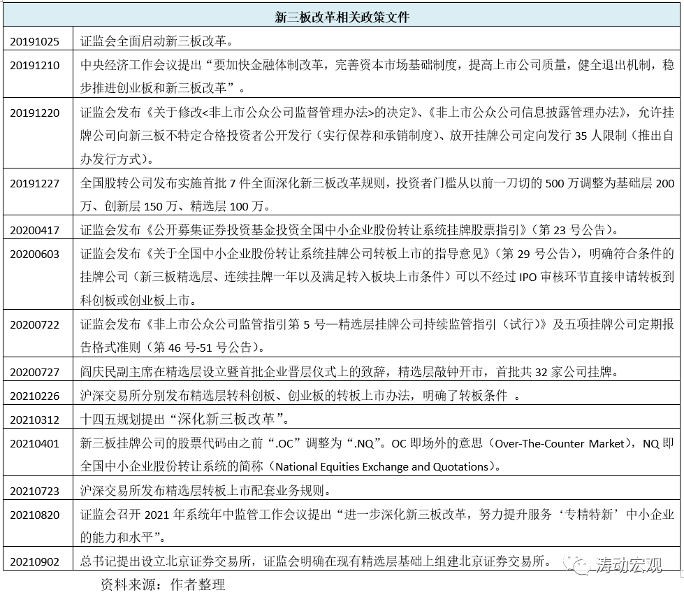 (三)2019年10月25日,證監(jiān)會啟動(dòng)全面深化新三板改革,隨后推出了設(shè)立精選層、建立公開發(fā)行制度、引入連續(xù)競價(jià)和轉(zhuǎn)板機(jī)制等一系列改革舉措。