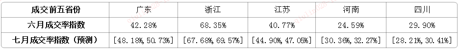 (二)  成交率指數(shù):前五省成交率均明顯下降