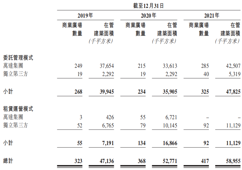 珠海萬達(dá)商管擁有285個萬達(dá)集團(tuán)商業(yè)廣場均采用委托管理模式管理,合共135個在管獨立第三方商業(yè)廣場中95個采用租賃運營模式管理。
