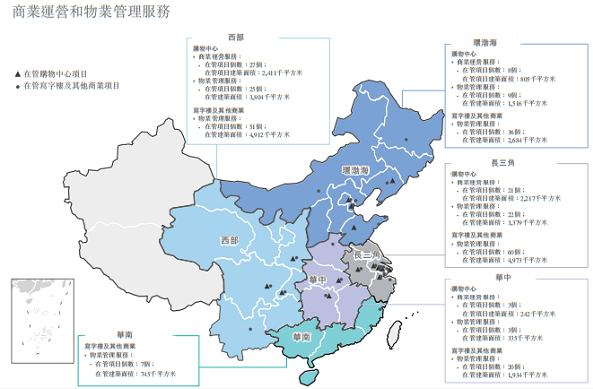 商業(yè)物業(yè)方面,報告期間內(nèi),總簽約商業(yè)物業(yè)(包括購物中心及寫字樓)為42個,總簽約建筑面積約為560萬平方米,同比增加27.7%;在管商業(yè)物業(yè)為16個,同比增加6個,總在管建筑面積約為160萬平方米,同比增長57.4%。