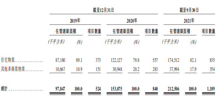 住宅物業(yè)方面,報告期間內(nèi),總簽約住宅項目為213個,總簽約建筑面積約為4,050萬平方米;在管住宅項目為128個,總在管建筑面積約為2,080萬平方米。