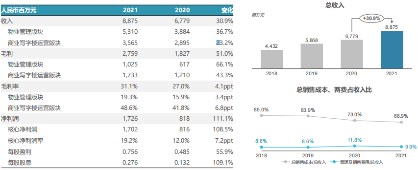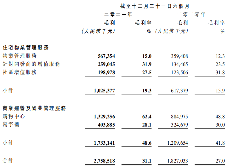 報告期間內(nèi),毛利率方面,整體毛利率增加至31.1%,其中物管板塊增長至19.3%,商管板塊增長至48.6%。