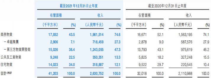 報告期間內(nèi),卓越集團(tuán)的在管面積為41.2百萬平方米,同比上升28.7%,其中商務(wù)物業(yè)占比為43.5%為17.9百萬平方米,公共及工業(yè)物業(yè)占比為22.5%為9.2百萬平方米,住宅物業(yè)占比為34.0%。